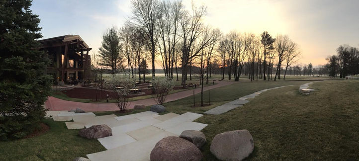 Rettler Corporation designed the master plan for SentryWorld’s outdoor renovation project. There were large timbers that were used as part of the new terrace and patio area. The patio area is accessible from the restaurant and the golf course. In addition to the sitting area on the patio, there are three large gas fire pits that were installed to create sitting areas that can be used when the weather turns cool. The landscaping around the building included many mature trees due to the Owner’s request to leave the trees and work around them. Rettler Corporation designed the landscaping that includes the limestone steps that lead to the golf course as well as the front entryway to the building.